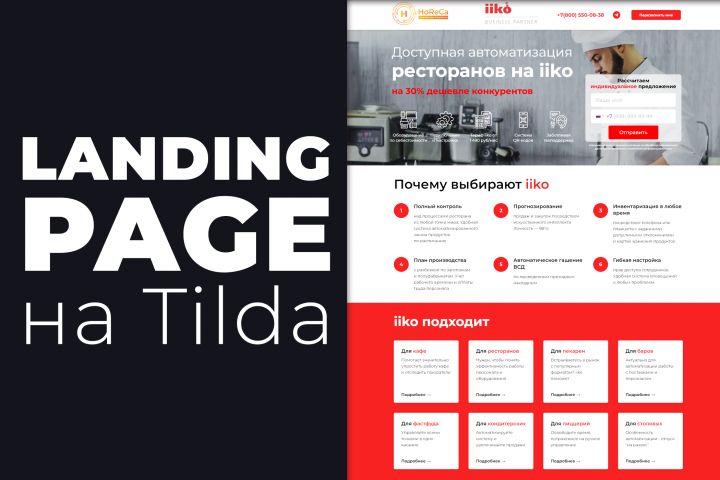 Лендинг для компании, занимающейся подключением и поддержкой системы iiko