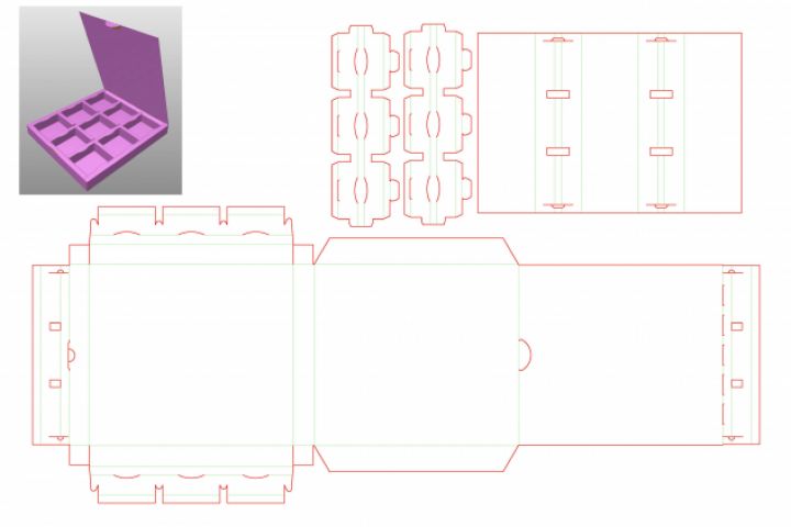 Коробка с объемными бортами и разделителями, разработка конструкции.