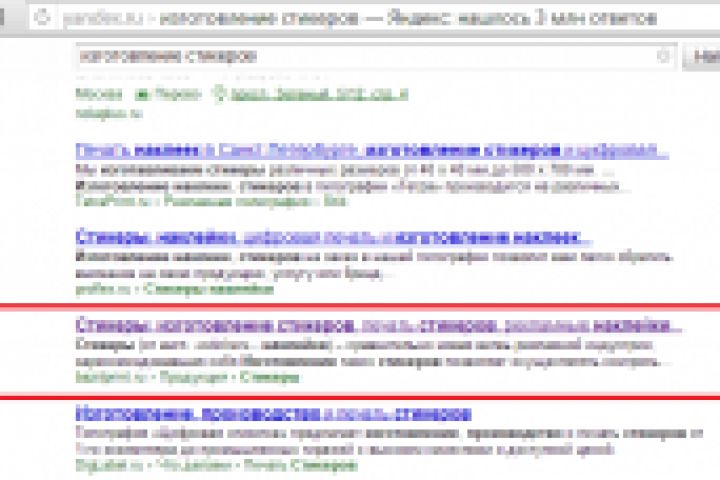 изготовление стикеров – 7 место, НЧ, спрос – 658 (регион Москва, ПС Яндекс)