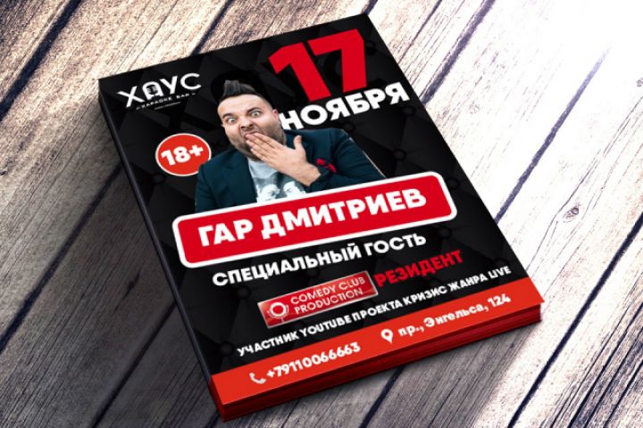 Листовка для "ХАУС" к выступлению резидента COMEDY CLUB