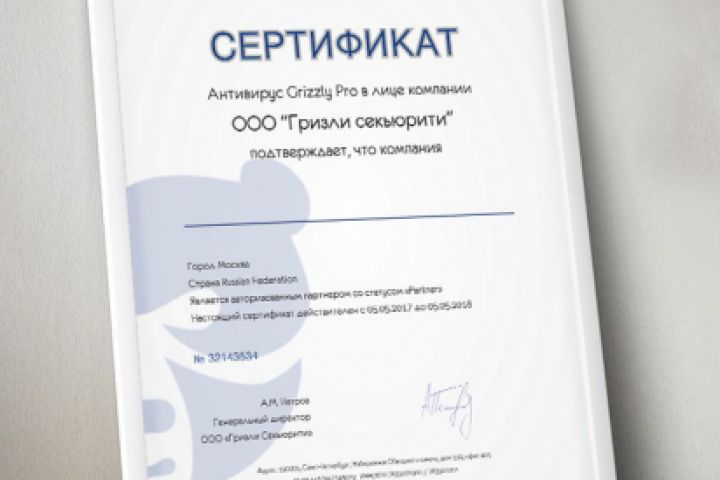 Сертификат для антивируса "Grizzly pro"