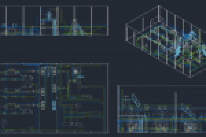 Выполнено моделирование цеха упаковки пищевых изделий по строительным чертежам и чертежам технологов с расположением оборудования. Выполнена прокладка трасс кабельных лотков к оборудованию для определения точной спецификации на кабельные лотки и кабель.