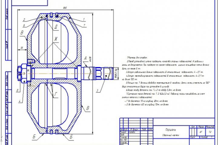 Разработка деталей компрессорной установки (поршень в сборе, трубопровод водяной и газовый, цылиндры, коленвал и тд)