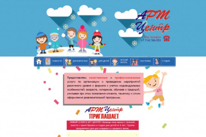 Сайт агенства по проведению праздников. Создан на AdobeMuse.