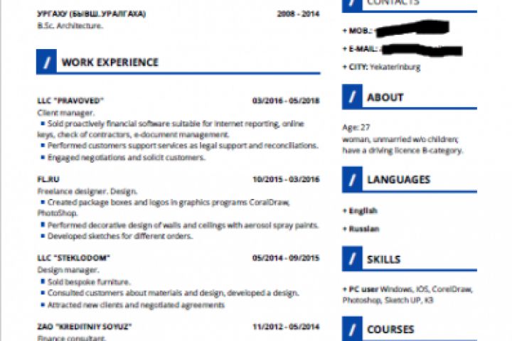 Резюме на англ креативное