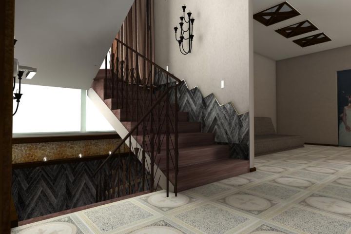 Общее пространство, в котором оставили напольную плитку. Процесс.