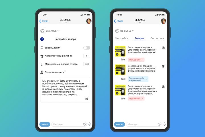 Была добавлена тонкая настройка ответов, создание собственного стиля общения, индивидуальная настройка для каждого товара и возможность просмотра статистики.