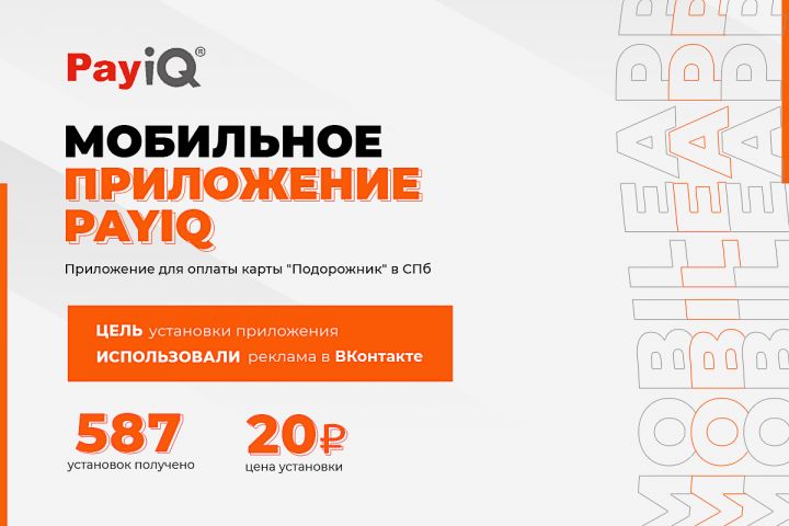 Обратился клиент за привлечением нового трафика через ВК. Клиент выходил на новый рынок в России, конкретно делали трафик на мобильное приложение "PayIQ" Приложение для оплаты карты "Подорожник" в городе Санкт-Петербург.