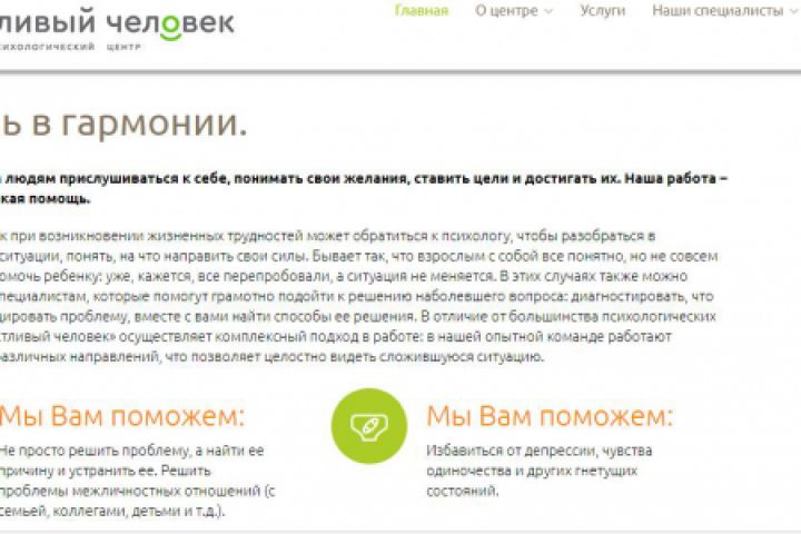 Текст на главную страницу сайта психологического центра "Счастливый человек"