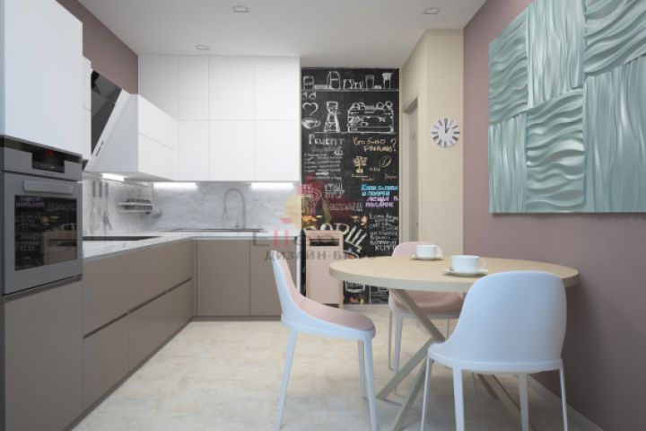 Дизайн современной кухни, минимализм. Розово-пудренные цвета, мягкая теплая гамма. Дизайн кухни молодой девушки. Больше проектов и контакты для сотрудничества можно найти тут http://www.ellenpo.ru/