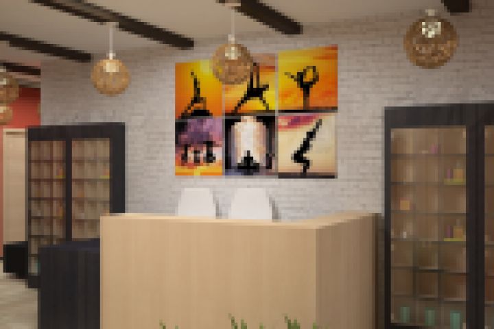 Дизайн небольшого фитнес центра. Тут вы можете найти 2 необычные комнаты для йоги.