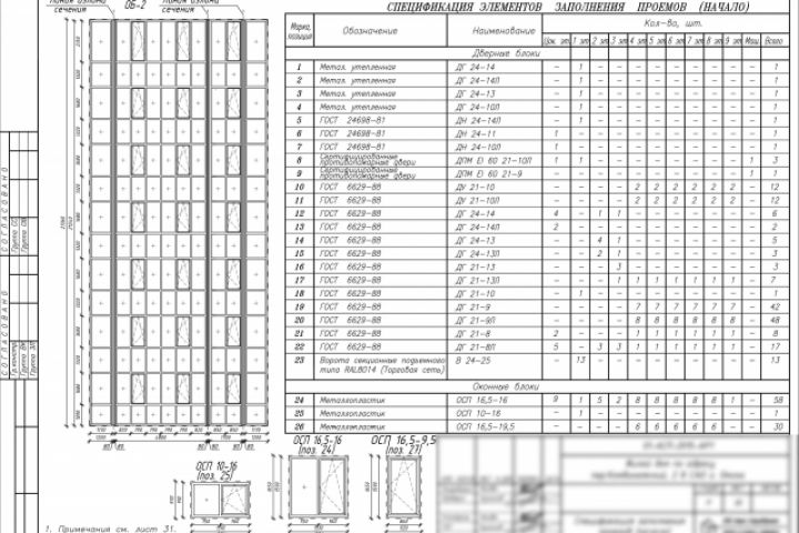 Многоэтажный жилой дом, ведомость заполнения проёмов
