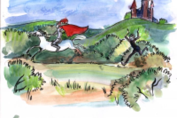 Вид принявши молодецкий, Принц несется на охоту, Но за ним бежит дворецкий И кричит, прогнав дремоту: