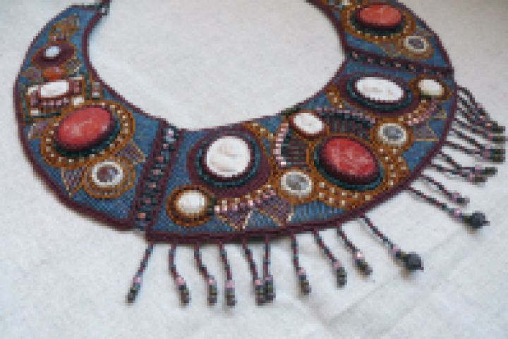 Из чего делалось: бусины пористого коралла, яшмовые (4) и агатовые (4) мелкие кабошоны, семь винтажных фарфоровых камей ручной работы, каждая в единственном экземпляре, каждой по 20 лет. Металлические бусины и фурнитура, разнообразный японский бисер Toho, подкладка - овечья замша наппа.