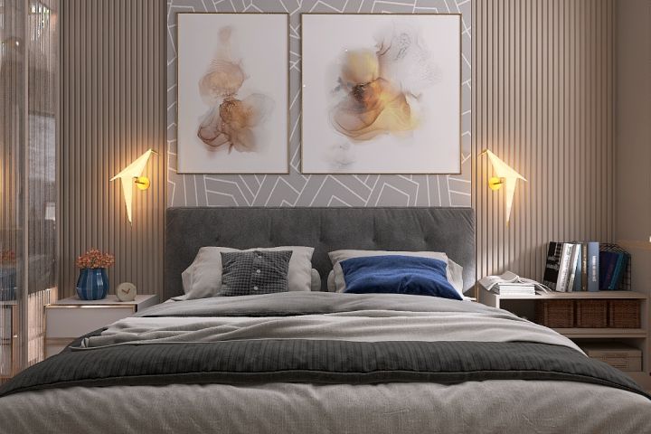 * Цветовая палитра. Основными цветами интерьера стали бежевый и серый в различных оттенках. Бежевый добавил теплоты и уюта, а серый — спокойствия и гармонии. Для акцентов использованы декоративные элементы или текстиль. Также были применены обои с ненавязчивым бежевым рисунком для создания единого стиля.