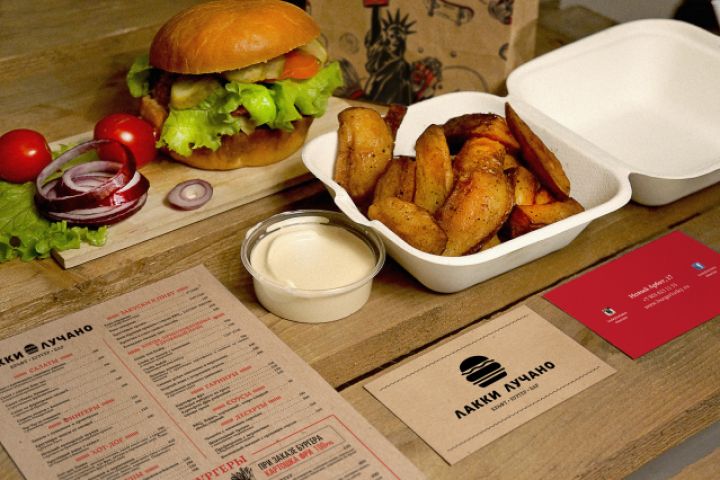 Меню + визитка + пакет бургерной "Лакки Лучано"