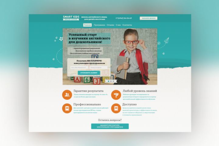 Разработка, Landing Page для детской школы английского. Проект под ключ, включая верстку, интеграцию CRM, настройка форм обратной связи. Также для данного проекта настраивал контекстную рекламу в Google и Яндекс. Средний конверт из посетителя в звонок, по данному Landing Page составил 18,5%!