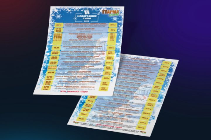 Двухсторонняя листовка А5 для турагентства Парма-Тревел.