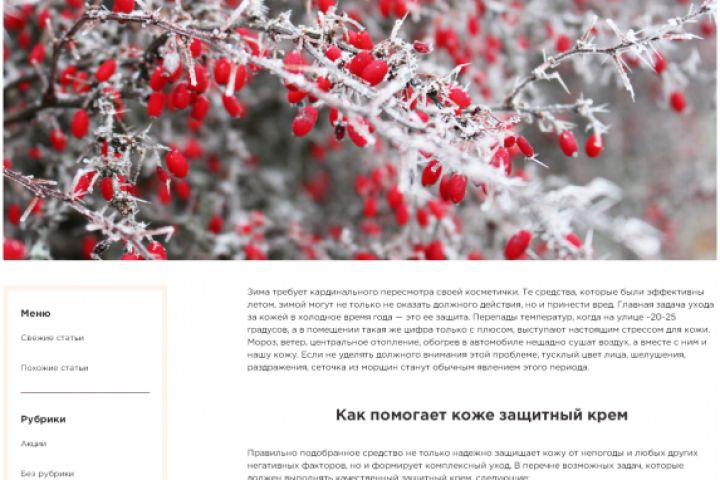 Какой крем от мороза и ветра для лица лучше. Заполнение блога сайта. 100% копирайт. Верстка материала. Размещение на сайте.