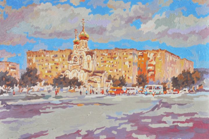 Городской пейзаж масляными красками в современной живописи.