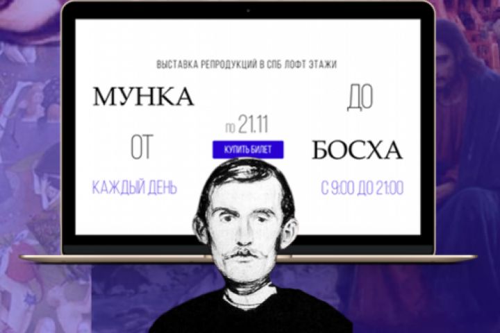 Сайт выполнен для Лофт Проекта Этажи, в котором проходила выставка репродукций "От Мунка до Босха"