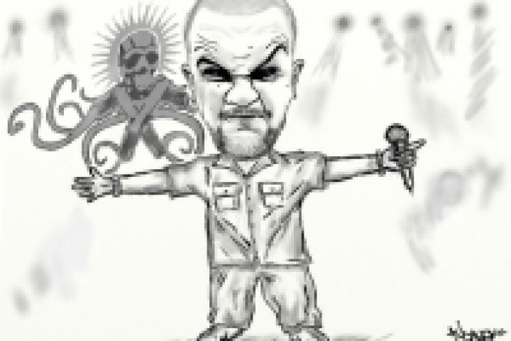 Цифровой чёрно-белый шарж "Баста"