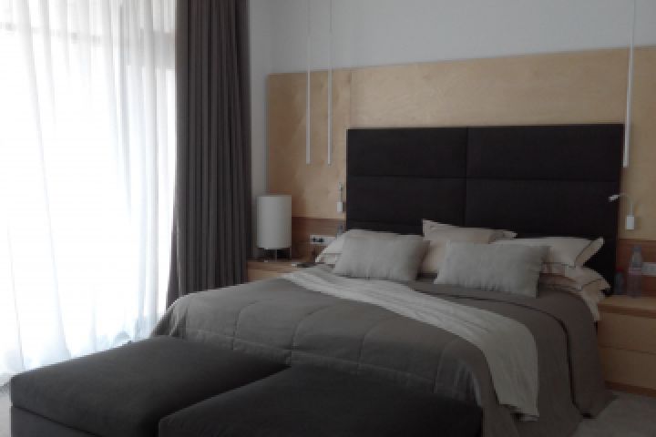 Шторы из натурального материала - льна , покрывало и накидка - лен , стиль - минимализм