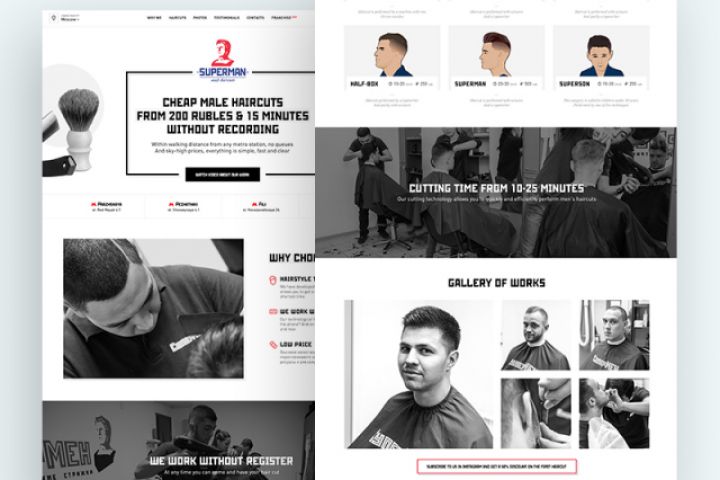 Landingpage для "Супермен мужские стрижки" Все от прототипа до верстки