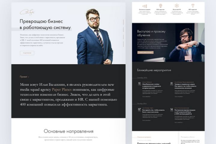 Посадочная страница для Илья Балахнина. Илья — основатель агентсв "Paper-planes" & "Strikh".