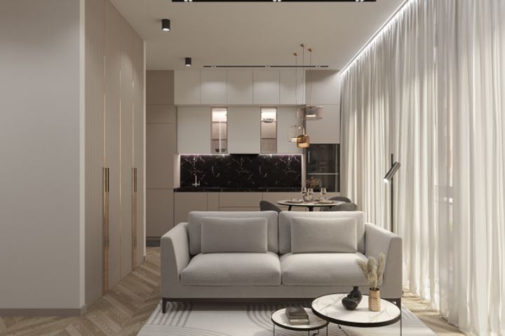 Визуализация квартиры студии 37 м кв. Совместный проект с дизайнером Полиной Эмессауден