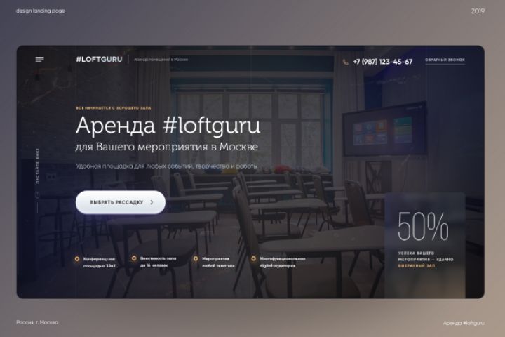 Разработка Landing page — Аренда помещений для проведения различного рода мероприятий в Москве с различными вариантами рассадки.