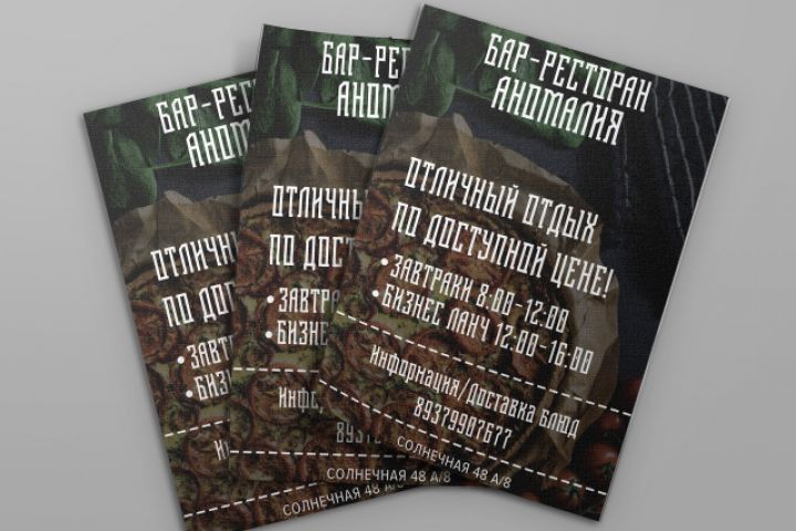 Был создан дизайн листовки для Бар-ресторана "АНОМАЛИЯ"