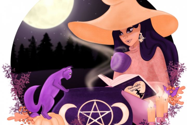 Вторая иллюстрация из серии про ведьму Лизу и ее кошку Пину для марафона "Magic October". Позже эта иллюстрация вошла в осенний стикерпак.