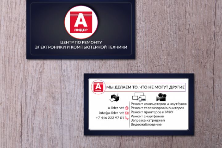 Разработка стандартной двухсторонней визитки для компании, занимающейся ремонтом техники.