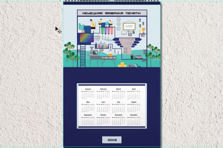 Необходимо было разработать корпоративный календарь для "Немецкой фабрики печати". Один из вариантов - показать процесс печати, подбора цветовой палитры и т.д. (как это происходит на фабрике печати).