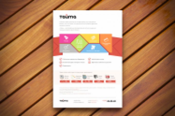 Листовка для компании, которая занимается поставкой полиграфической продукции. Выполнено в соответствии с тз и фирменным стилем. Центральный блок основных услуг перенесен с сайта (желание заказчика).