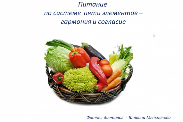 Данная работа делалась для фитнесс-диетолога Мельниковой Татьяны, которая продвигала систему питания по пяти элементам. Ознакомиться с презентацией можно по ссылке ниже