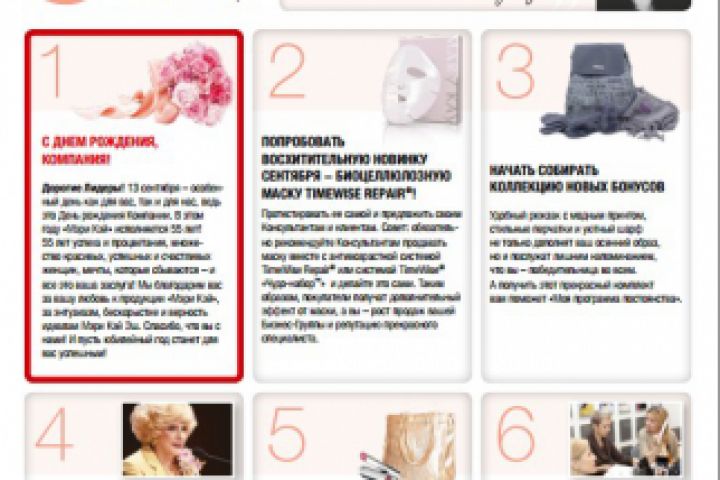 Внутрикорпоративное издание для тех, кто ведет бизнес "Мэри Кэй". Все тексты моего авторства. Издание полностью - в присоединенном файле.