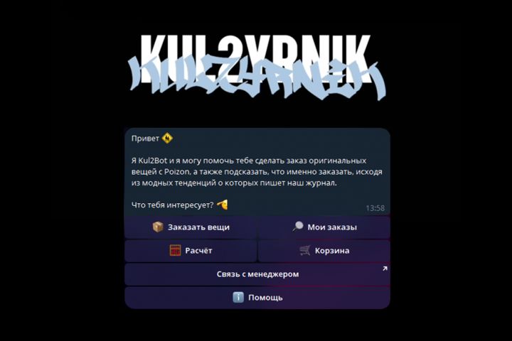 Telegram бот был разработан специально для журнала "KUL2YRNIK", который пишет о современной моде и культуре (https://www.instagram.com/kul2yrnik).