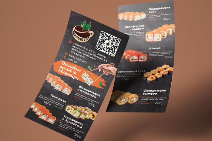 Дизайн флаера для продвижения службы доставки роллов в городе Нерюнгри