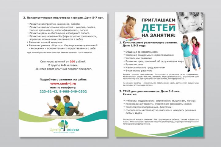 Дизайн двусторонней листовки Занятия для детей