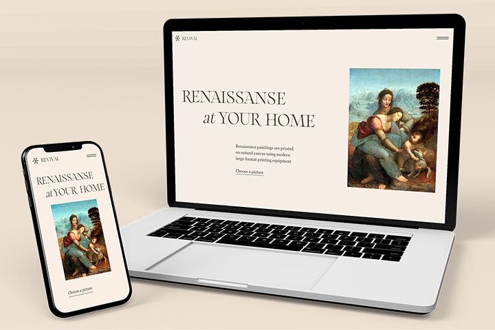Продажа картин эпохи Возрождения онлайн, напечатанных на полотнах. Максимальный акцент на продажу рам для этих картин. Особое внимание уделено анимации сайта, которая привлекает внимание посетителя к важным деталям, например, показывает каждую картину в разных рамах и таким образом повышает продажи багетов.