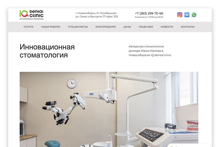 Многостраничный сайт для инновационной стоматологии в Новосибирске