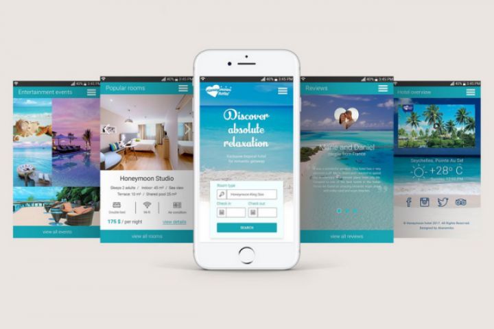 Дизайн мобильной версии сайта отеля "Honeymoon hotel" на Сейшельских островах.