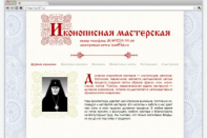 В текстовых страницах использован элемент буквицы — характерной особенности древних книг. Статичная ширина основного блока дает возможность избежать изменения компоновки текста и изображений на странице, еще более подчеркивая «книжную» суть графического решения. В результате дизайн сайта является удачной стилизацией под старину — что и требуется для иконописной мастерской.