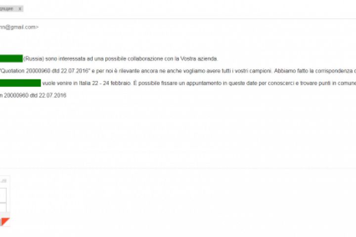 Перевод деловой переписки архитектурной компании (Россия) и итальянского поставщика строительных материалов.