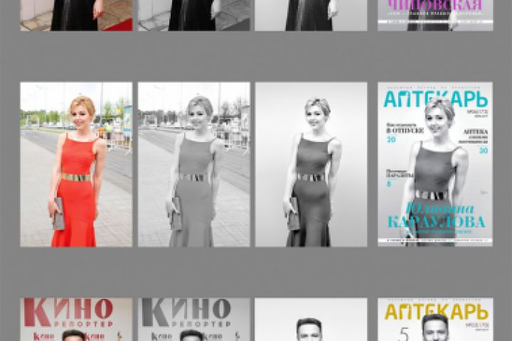 Для обложки журнала используются фотографии звезд шоу-бизнеса. Необходимо сделать тщательную обработку фотографии. Я должен правильно работать с цветом, а также использовать инструмент «Dodge and Burn», чтобы сделать более объемную фотографию.