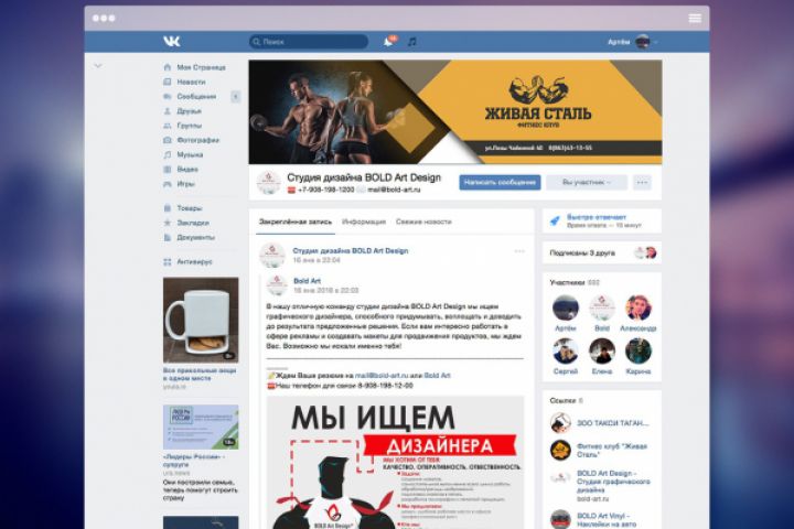 Дизайн группы вк для фитнес клуба "Живая Сталь"