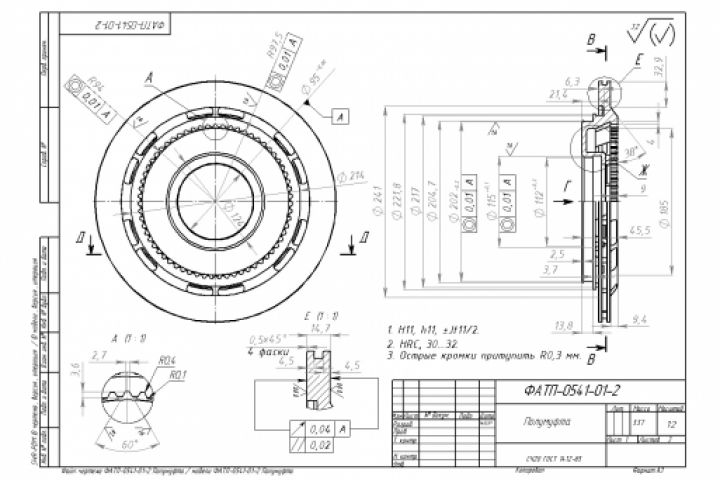 Чертеж тормозной полумуфты привода кривошипного револьверного пресса с ЧПУ.
