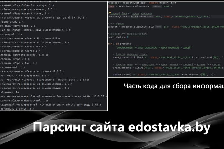 Сбор информации о продуктах, также в коде присутствует скачивание картинок с товара. Весь товар записывается в файл